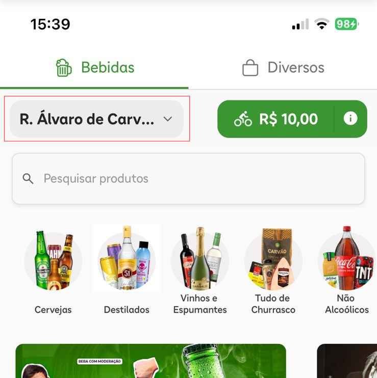 Se a loja tiver a opção de retirar no estabelecimento, o app vai mostrar isso também.