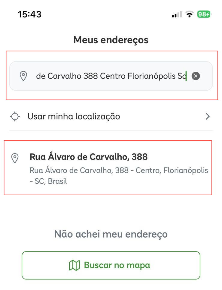 Toque em “Adicionar endereço”, escreva seu endereço e selecione quando aparecer nas sugestões.